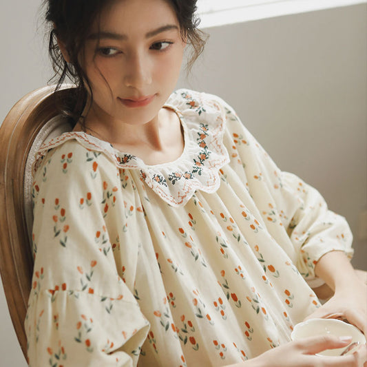フローラルレースのガウンとコットンスリップの2ピースネグリジェ