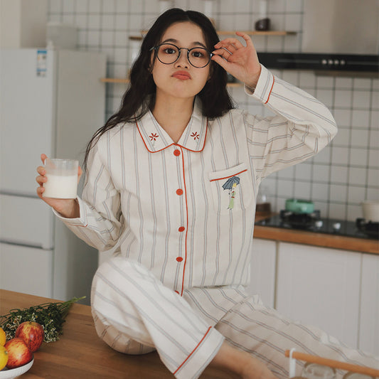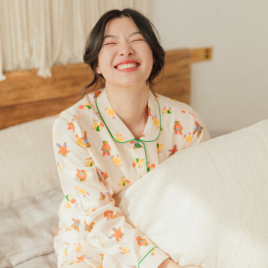 コットンフローラルレースの七分丈レトロ風パジャマ