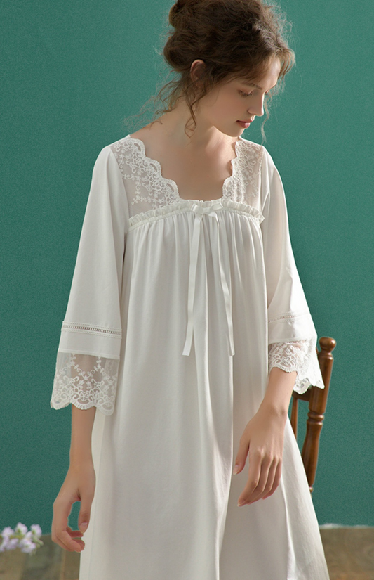コットンスクエアネックフローラルレースのスウィートネグリジェ