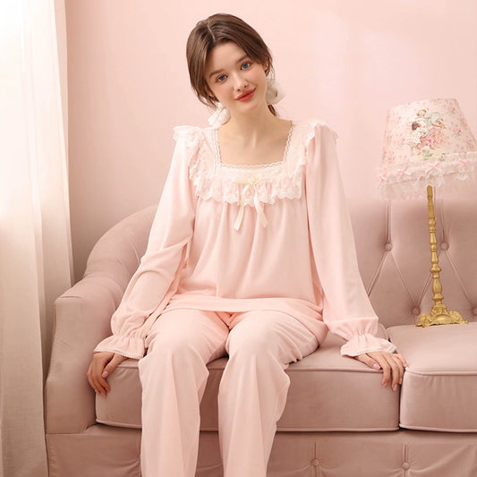 コットンダブルガーゼレースとバラ柄のパジャマ