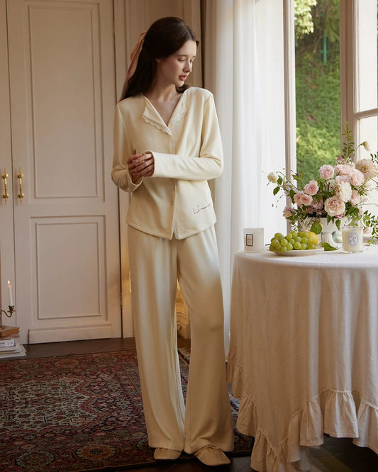リボンのディテールは甘すぎないフェミニンさを演出してくれるモチーフとして大人気! 今回は、大人の女性にぴったりなさりげなくときめくリボンデザインのルームウェアをご紹介🎀