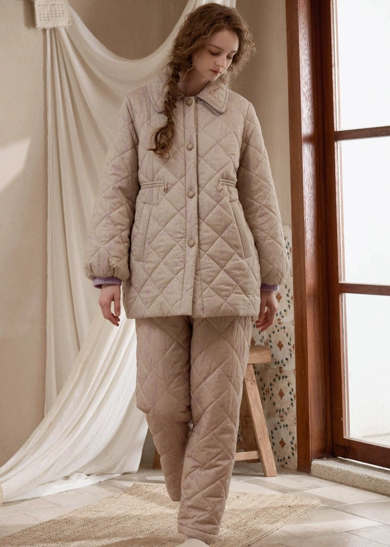 「コットン ドールカラーキルティングルームウェア」は、ふんわりキルティングと肌に優しいコットン100%があなたを優しく包み込みます。